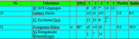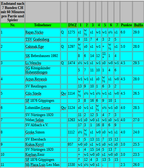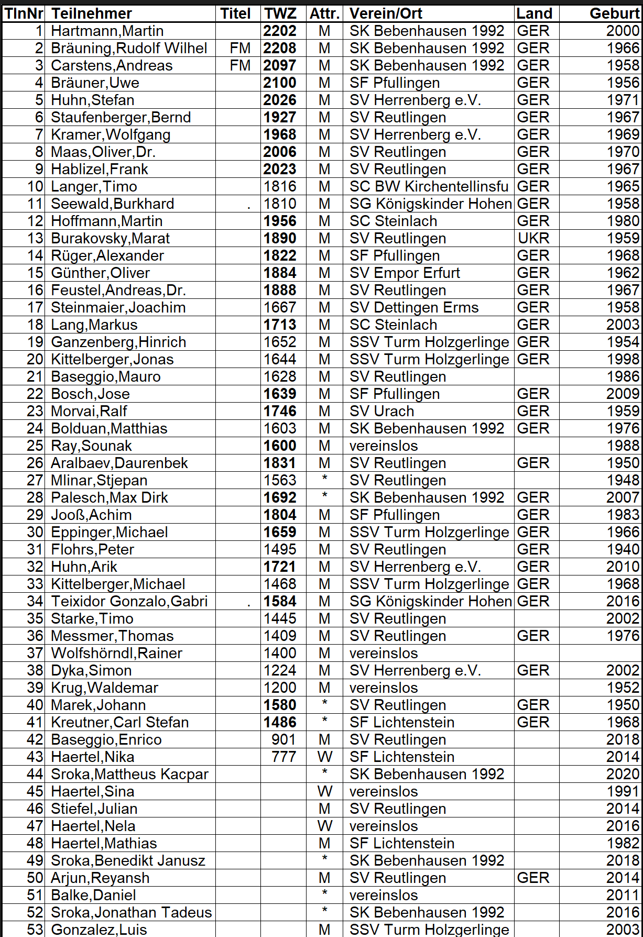 Bemerkenswert ist die Teilnehmeranzahl von Bebenhausen. Mit 11 von 22 stellten sie die Hälfte aller Teilnehmer. Davon sind wir leider noch meilenweit entfernt. Wir hätten uns sehr gern gewünscht, wenn die Reutlinger mit einer größeren Anzahl von Spielern angetreten wären.