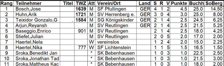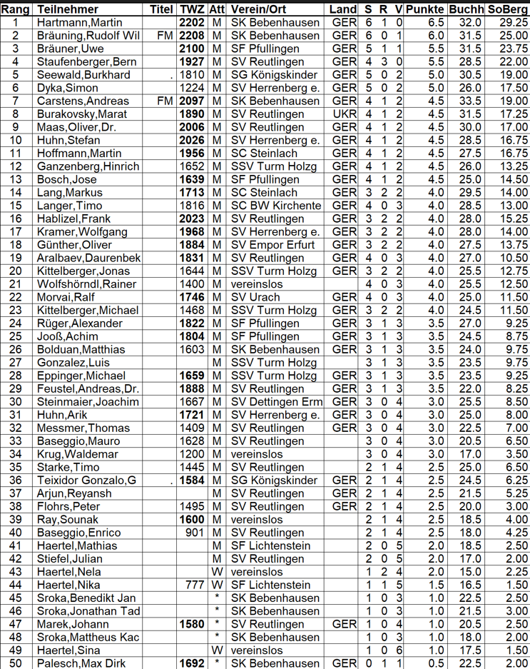 Bester Reutlinger Spieler auf Platz 4 wurde Bernd Staufenberger. Marat Burakovsky belegte Platz 8 vor Oliver Maas.